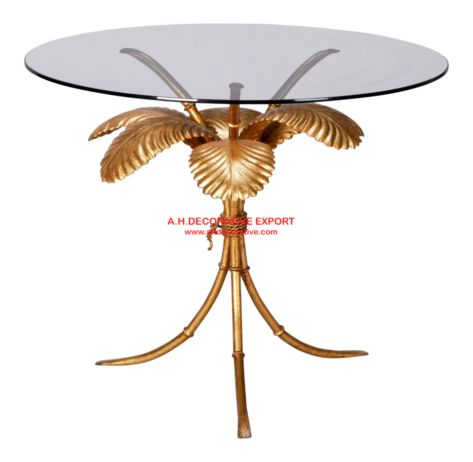 โต๊ะต้นปาล์มทันสมัย เฟอร์นิเจอร์ตกแต่งบ้าน โต๊ะข้างทรงต้นไม้สีทอง สำหรับห้องนั่งเล่น โรงแรม สำนักงาน ทำจากสแตนเลส ขนาดสั่งทำได้