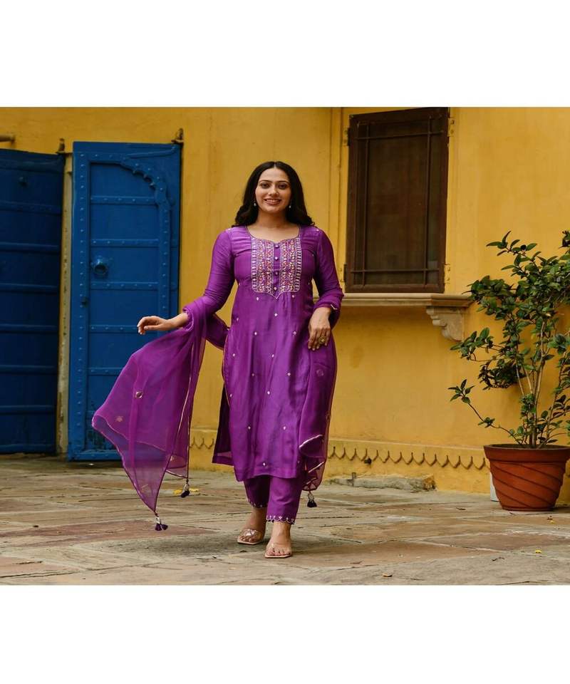 ชุดเดรสผ้าไหมคอตตอนปักลายสไตล์อินเดีย แขนยาว พร้อมสวมใส่ ดีไซน์เนอร์งานปาร์ตี้ล่าสุด ผ้าเรยอน พร้อมเสื้อคราปและคุर्ตา