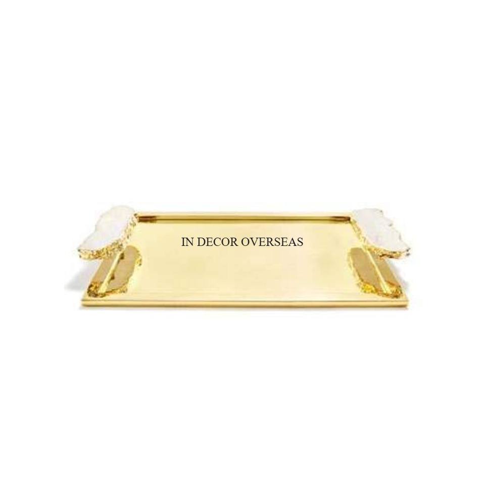 ถาดเสิร์ฟโลหะพร้อมที่จับชุบทองจากอินเดียดีไซน์เนอร์โลหะมีเอกลักษณ์ล่าสุด
