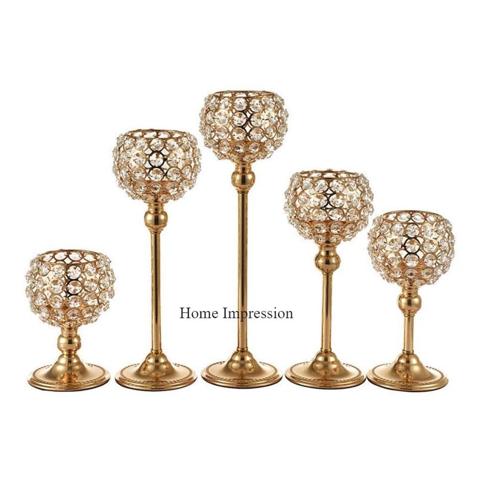 ชุดเชิงเทียนคริสตัลชุบทอง5ชิ้นชุดดีไซน์วินเทจแบบมีเชิงเทียนและขวดโหลอุปกรณ์ฟ้าผ่าสำหรับวางกลางโต๊ะใหม่ล่าสุด
