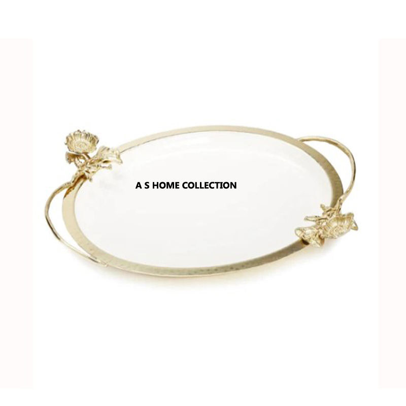 ถาดเสิร์ฟอาหารโลหะสีขาวสำหรับตกแต่งโต๊ะในครัว