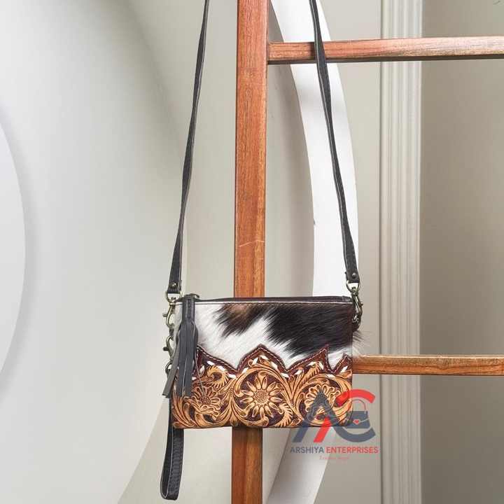 Product Name:Hand Tooled Leather Wristlet Crossbody Tassel Pouch