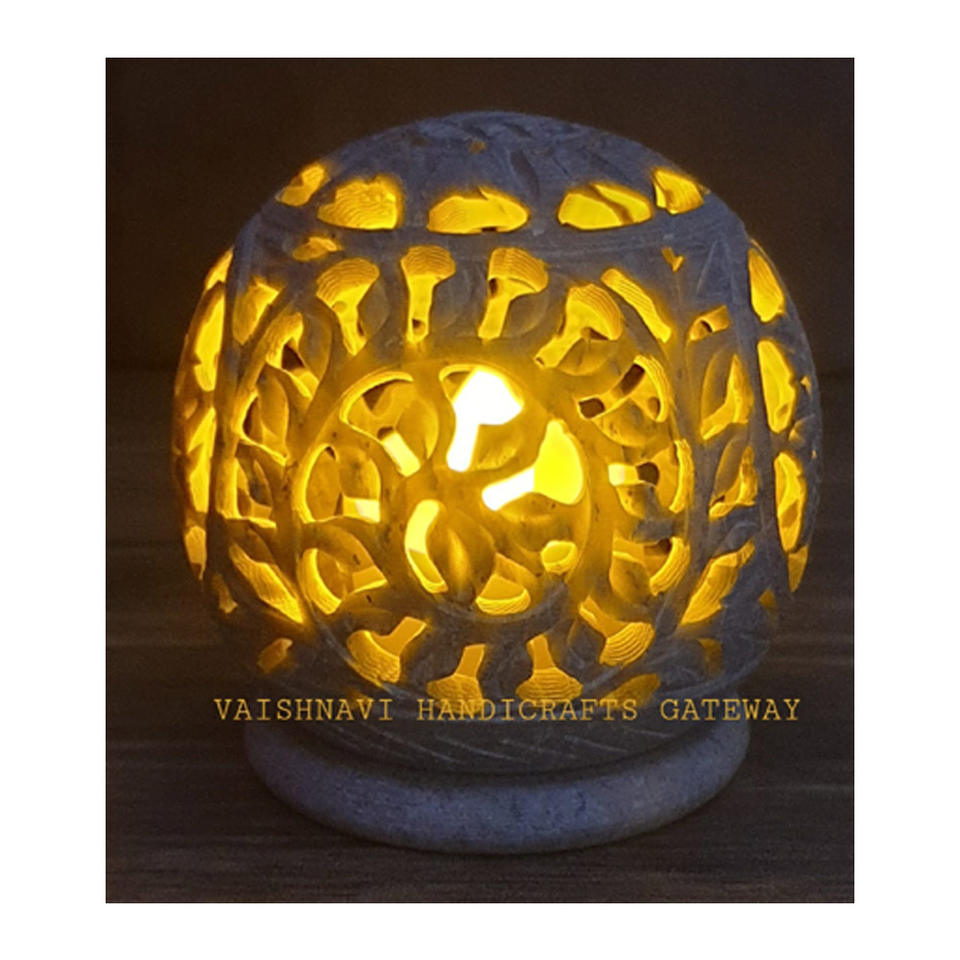 ที่วางเทียนแกะสลักด้วยมือทำจากหินธรรมชาติของอินเดียตกแต่งบ้านพร้อมที่วางเทียนอื่นๆ