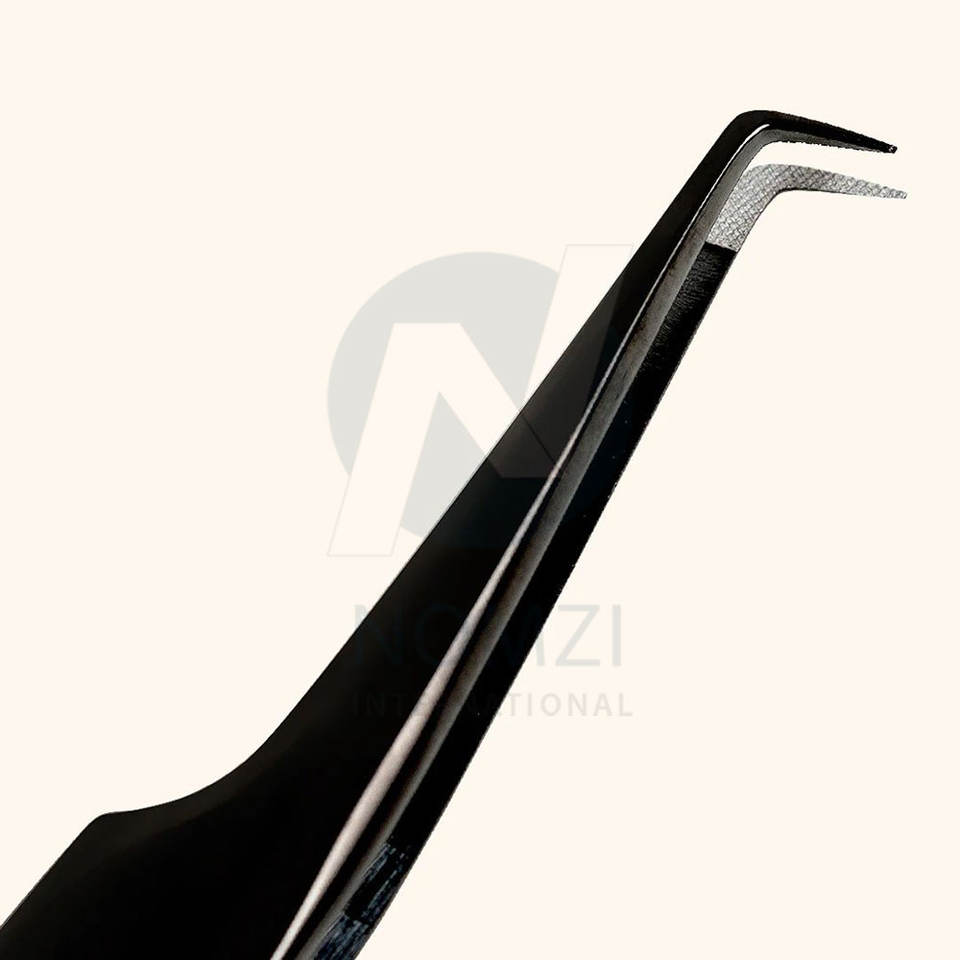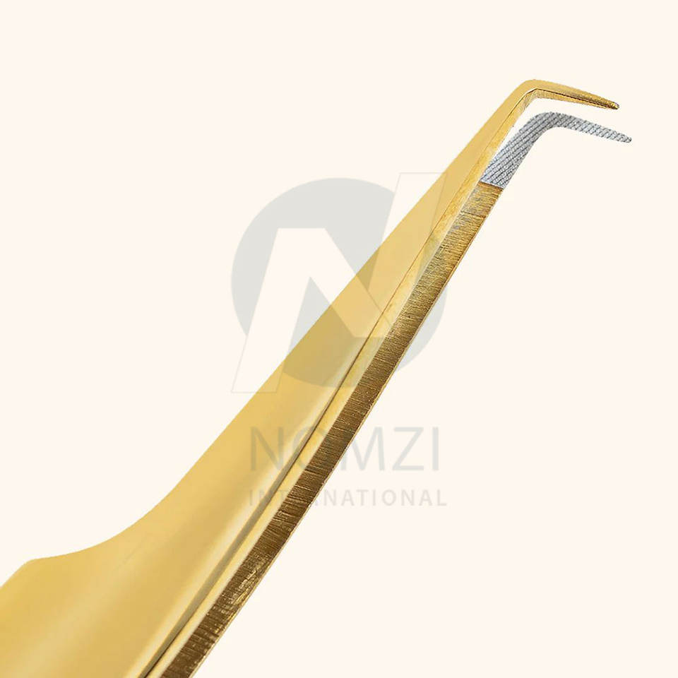 แหนบต่อขนตาแบบโค้งพลาสม่าสีดำสีทองปลายแหลมสเตนเลส90องศาแบบมืออาชีพล่าสุด