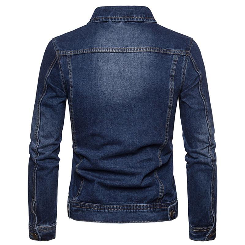 แจ็กเก็ตยีนส์สำหรับผู้ชายไซส์พิเศษเสื้อโค้ทแขนยาวสีพื้นปกตั้งสำหรับฤดูหนาว