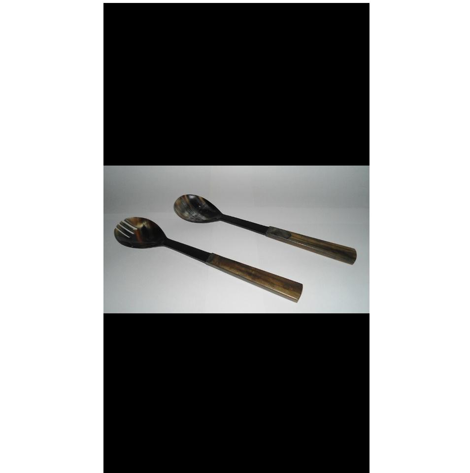 ชุดช้อนฮอร์นเครื่องใช้บนโต๊ะอาหารพร้อมมือจับเรซินทำด้วยมือคุณภาพสูงสำหรับคาเฟ่โรงแรมและคลับผับใช้รับประทานอาหาร