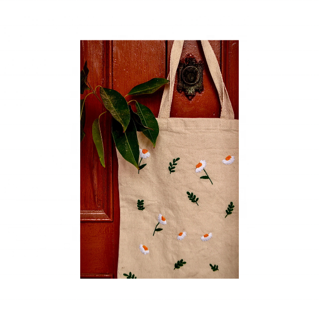 กระเป๋าผ้าคอตตอนปักลายดอกไม้สีแดงแบบกำหนดเองกระเป๋าสะพายไหล่สำหรับเดินทางใช้ได้ทั้งชายและหญิงได้รับการรับรองเป็นมิตรต่อสิ่งแวดล้อมใหม่ล่าสุด