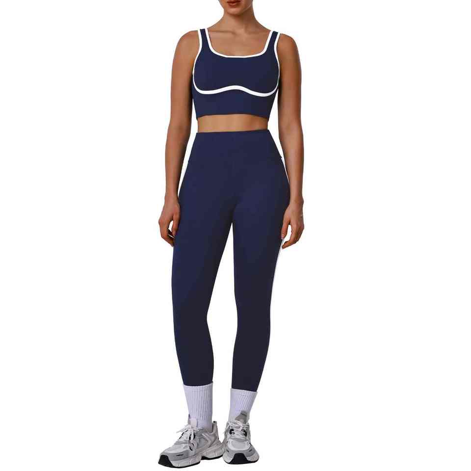 ชุดโยคะ 2 ชิ้น สำหรับผู้หญิง ออกกำลังกาย เล่นกีฬา โยคะ ดีไซน์ไร้รอยต่อ น้ำหนักเบา กระชับสัดส่วน ตัดสี ทูโทน เอวยืดหยุ่นสูง