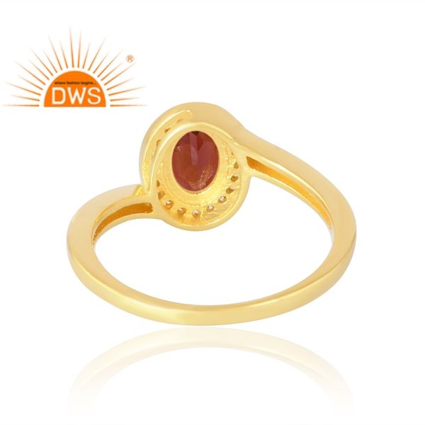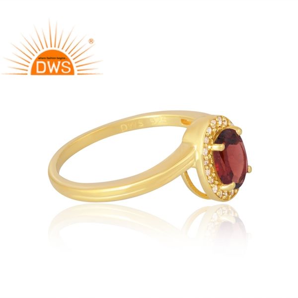 แหวนพลอย925ชุบทอง18K จากธรรมชาติ CZ และโกเมนเครื่องประดับแบบละเอียด