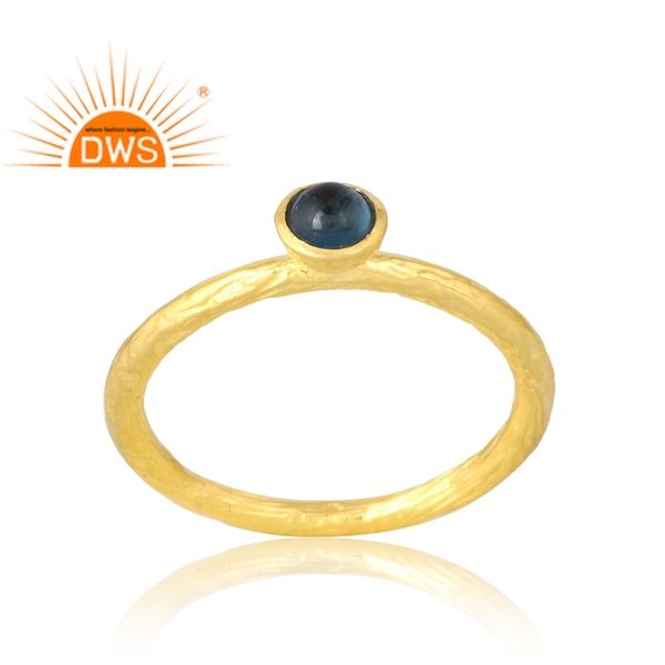 แหวนพลอยโทแพซธรรมชาติชุบทอง18K 925เงินสเตอร์ลิงสีฟ้าสไตล์ลอนดอนเครื่องประดับแบบละเอียด