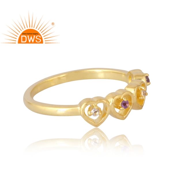 แหวนพลอย925ชุบทอง18K ชุบทองแหวนพลอยโทแพซสีขาวและพลอยบุษราคัมสีขาวเป็นของขวัญสำหรับผู้หญิง