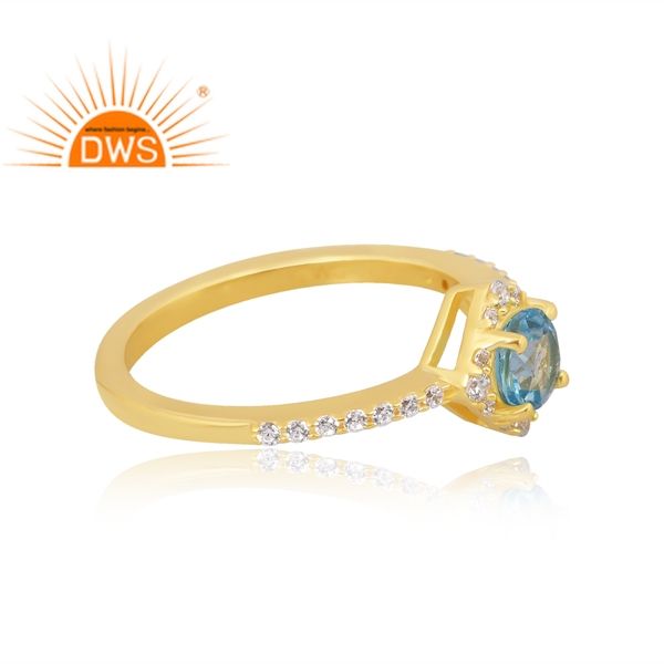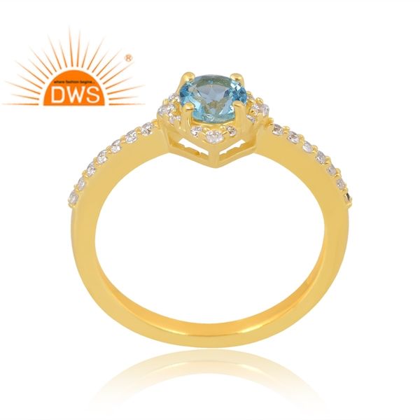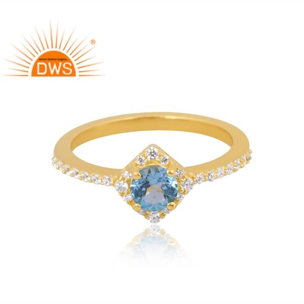 แหวนพลอย925ชุบทอง18K ชุบทอง18K แหวนพลอยบุษราคัมสีฟ้าเพชรสังเคราะห์จากธรรมชาติ