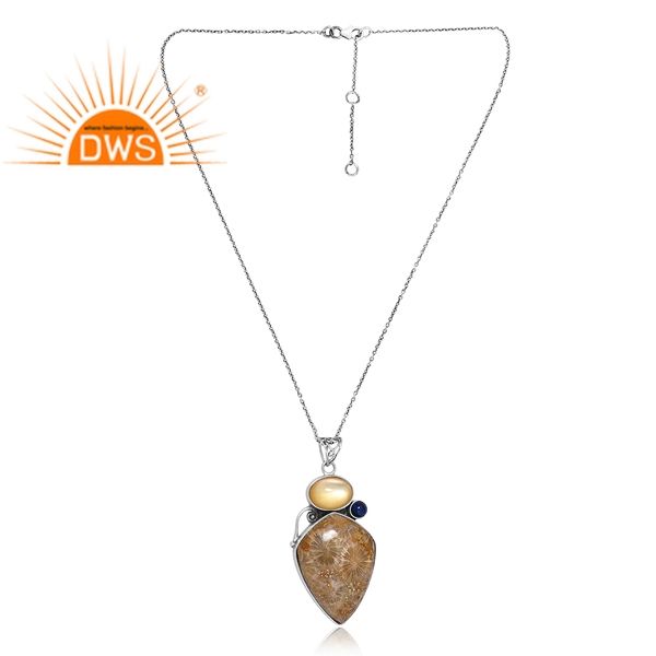 สร้อยคอจี้อัญมณีหลายเม็ดทำจากเงินแท้จากธรรมชาติ925ผู้ผลิตเครื่องประดับตามสั่ง