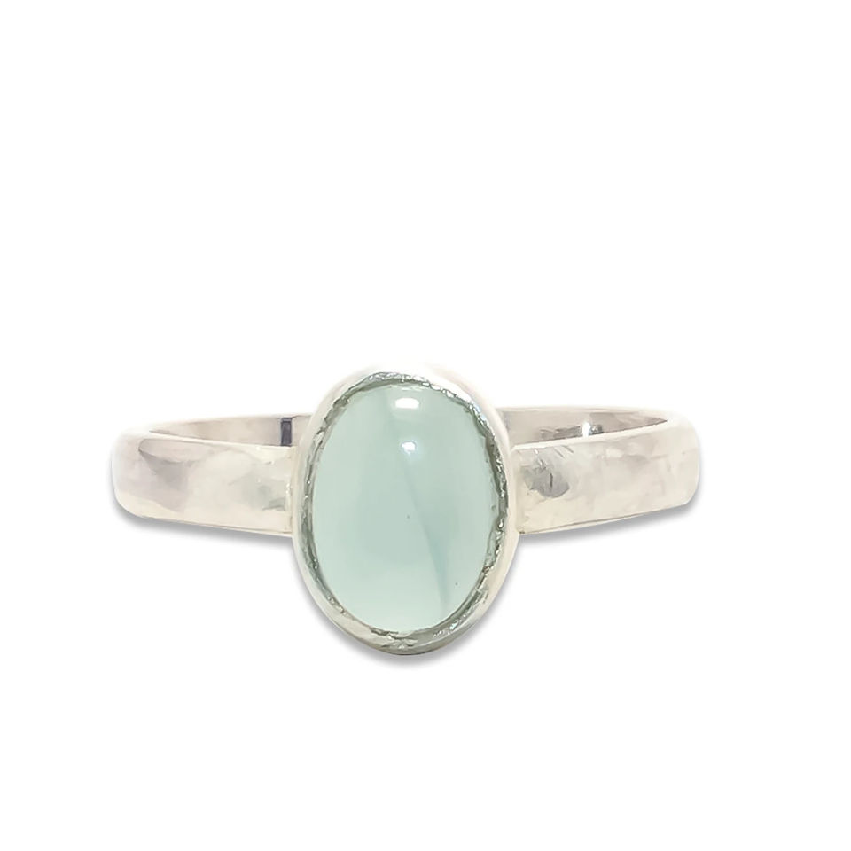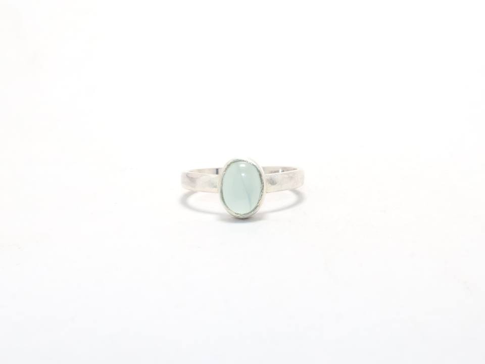 แหวนพลอยคาลซิโดนีธรรมชาติทำจากเงินสเตอลิง925ปรับแต่งได้เครื่องประดับวินเทจสไตล์มินิมอล