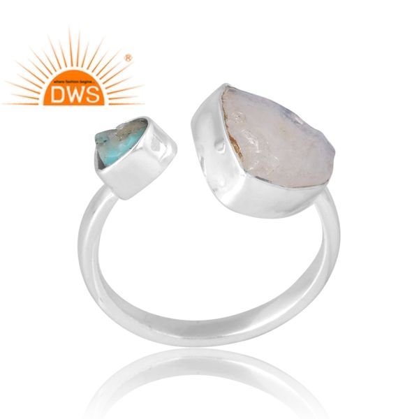 แหวนพลอยสีเงินสเตอร์ลิงสี925สีฟ้าครามและสีรุ้งดวงจันทร์ผลิตตามแบบ
