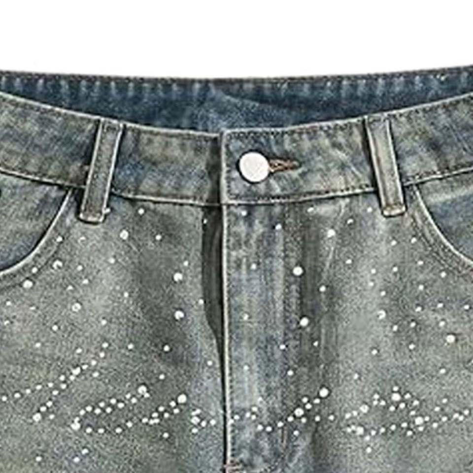 กางเกงยีนส์ขาสั้นผู้ชายรุ่นใหม่ล่าสุด คุณภาพพรีเมียม ผ้าฝ้ายระบายอากาศ ตกแต่งด้วยคริสตัล ทรงสลิมฟิต สไตล์ลำลอง สำหรับฤดูร้อน