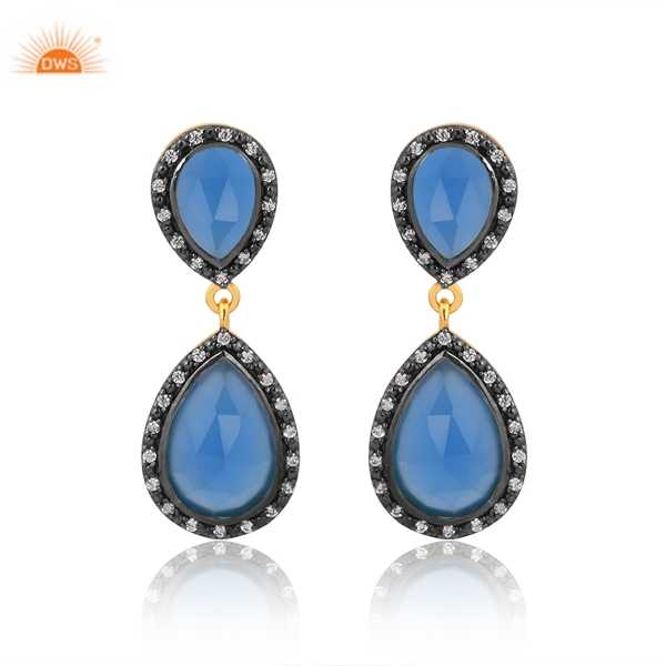 ต่างหูเพชรสังเคราะห์เซอร์โคเนียชุบทองสีเงินและสีฟ้าเครื่องประดับตามสั่ง