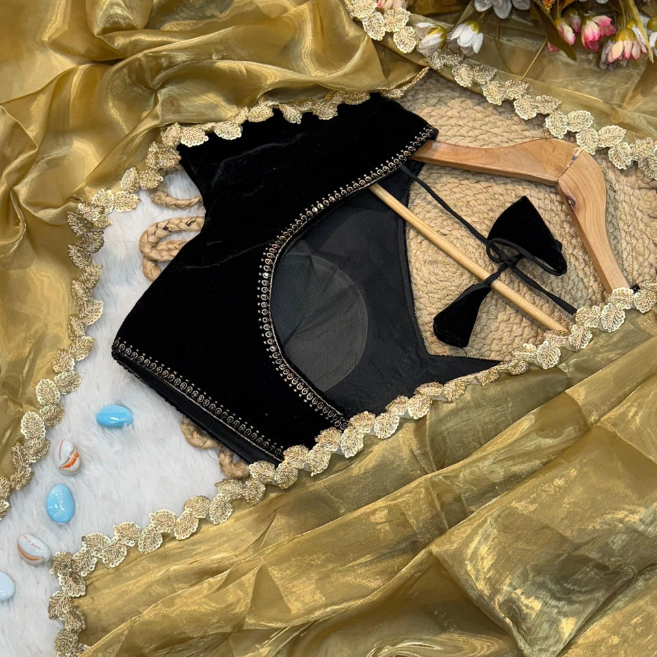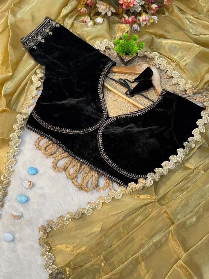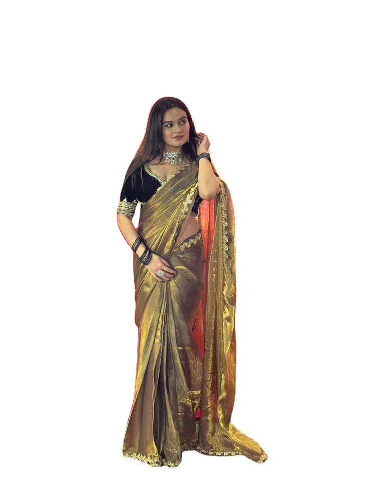 ผ้าจิมิชูสีทองสองโทนเนื้อนุ่มล่าสุดพร้อมคอลเลกชันเสื้อส่าหรีแบบเย็บ