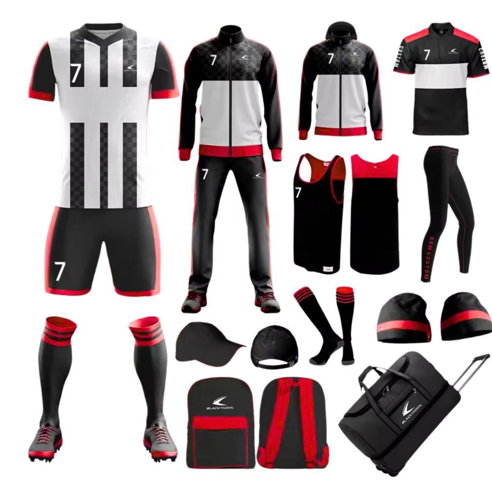 ชุดกีฬาล่าสุด บริการ OEM ชุดฟุตบอลแบบแพ็คเกจ เสื้อฟุตบอล กางเกงขาสั้น เสื้อโค้ช เสื้อแจ็คเก็ตแบบซิป คอซิป ระบายอากาศได้ดี