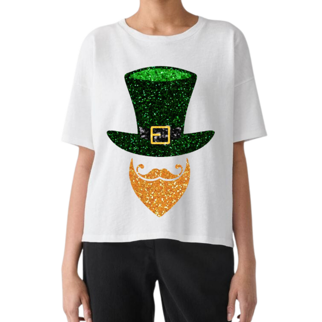 เสื้อยืดวันสตรีล่าสุดของแพทริคพร้อมงานปักเลื่อมลายใบแชมร็อกสำหรับงานเฉลิมฉลองและขบวนพาเหรด