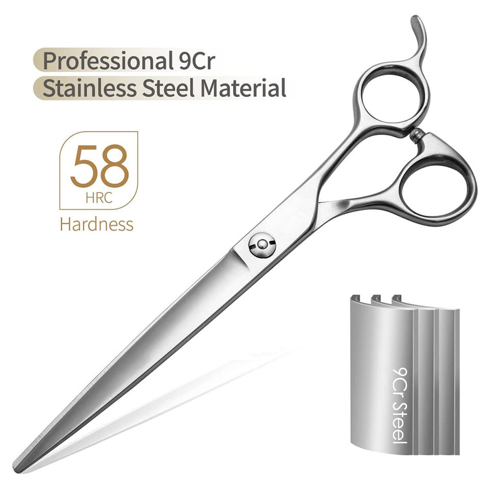 กรรไกรตัดผมสแตนเลสแบบใหม่ล่าสุด พร้อมที่พักนิ้วมือ กรรไกรตัดแต่งขนสัตว์เลี้ยงแบบขายส่ง พร้อมผิวเงา
