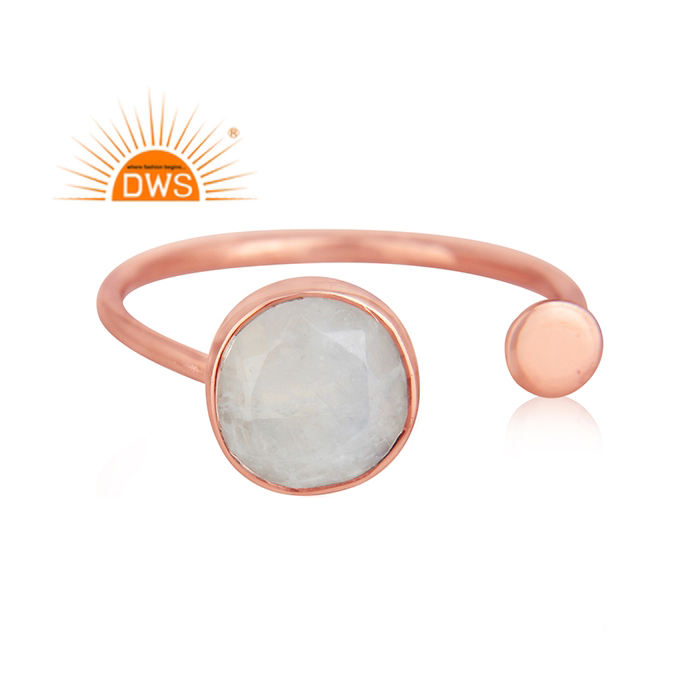 แหวนพลอยมูนสโตนชุบสีรุ้งสีทองโรสโกลด์จากธรรมชาติเครื่องประดับแบบปรับได้สำหรับเป็นของขวัญสำหรับผู้หญิง