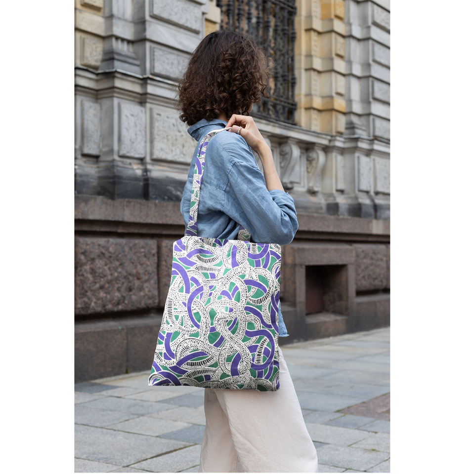 กระเป๋าผ้าแคนวาสพิมพ์ลายสำหรับผู้หญิง นำเข้าจากอินเดีย ผลิตจากผ้าฝ้ายรีไซเคิล 100% ดีไซน์ทันสมัย พร้อมส่ง