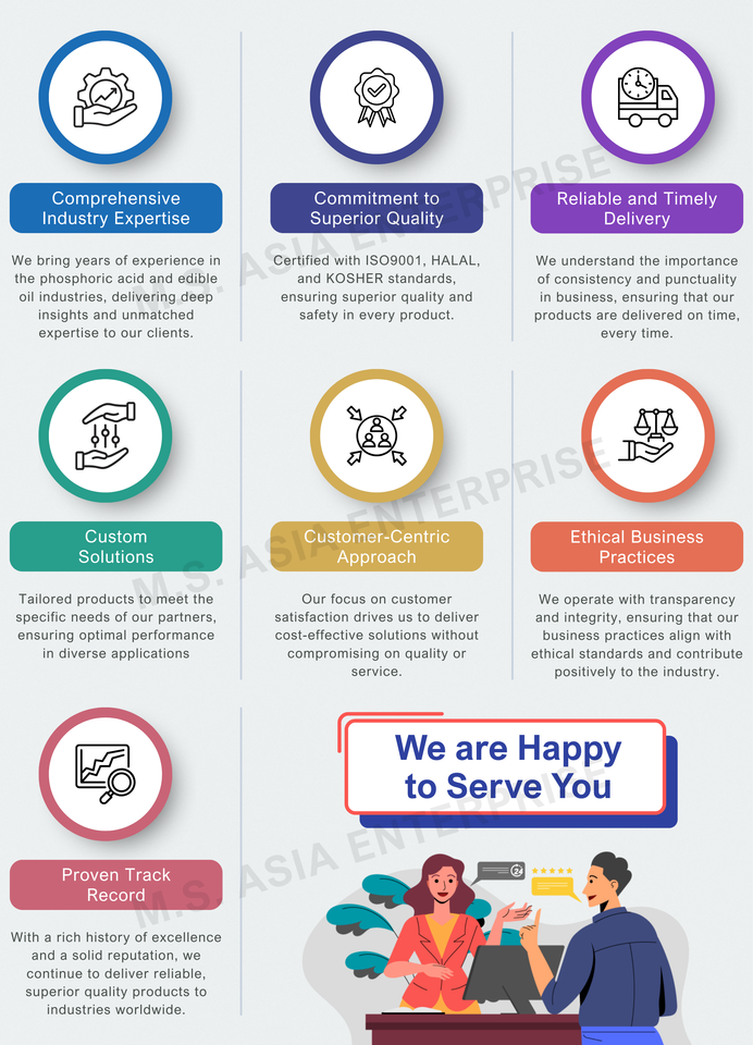 คุณภาพ:ความบริสุทธิ์สูง ความเข้มข้นคงที่ สิ่งเจือปนคลอไรด์และซัลเฟตต่ำ