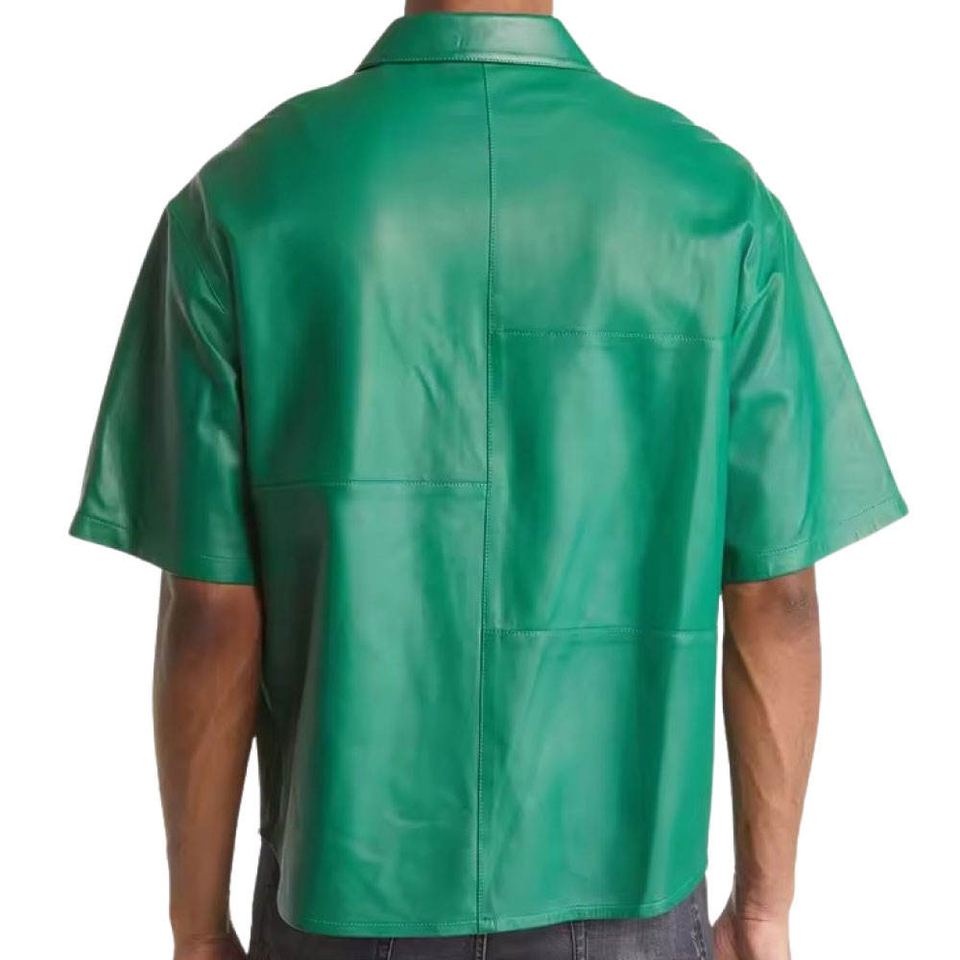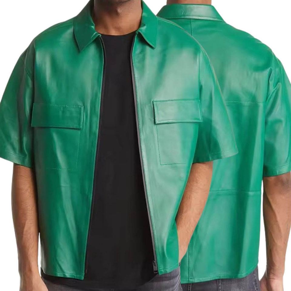 เสื้อเชิ้ตหนังทรงบ็อกซี่สไตล์สตรีทแวร์รุ่นล่าสุดสำหรับคอลเลคชั่นเสื้อผู้ชาย หนังแกะระบายอากาศได้ดี แฟชั่นลำลอง ราคาโรงงาน รับผลิตตามสั่ง (OEM)