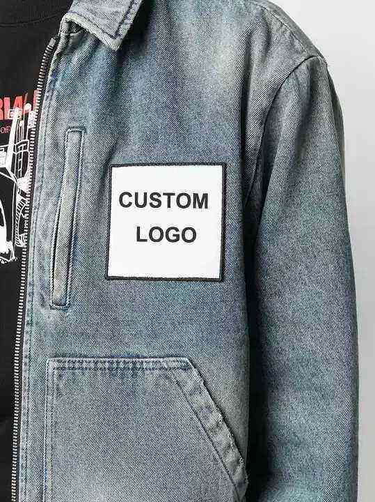 แจ็คเก็ตยีนส์ผู้ชายสไตล์สตรีทแวร์ประดับหมุดแบบครอป ขาดๆ แบบคาวบอย สำหรับผู้ชาย แจ็คเก็ตยีนส์ลำลองแบบสั่งทำพิเศษ