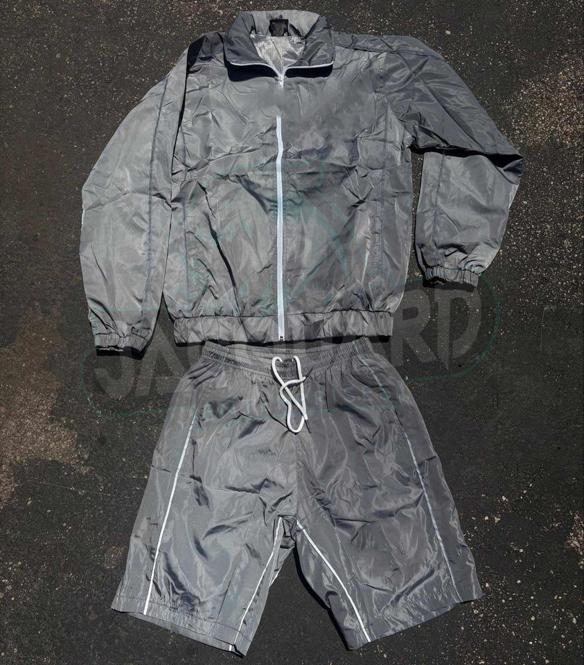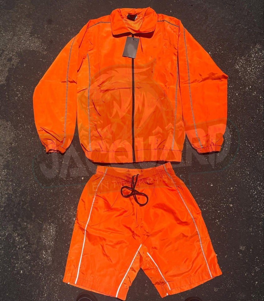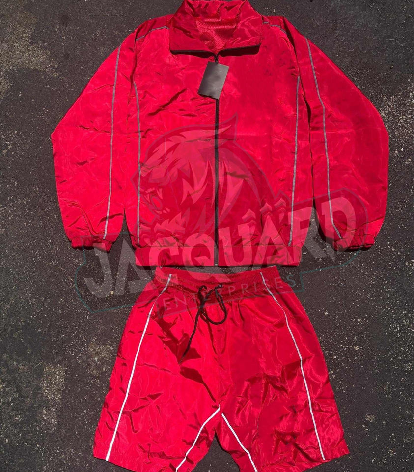 ชุดเซ็ตสองชิ้นผู้ชายสไตล์ล่าสุดสุดฮิต ชุดลำลองแนวสตรีทแวร์ เสื้อแจ็คเก็ตกันลมสะท้อนแสง 3M ชุดวอร์มฤดูร้อน