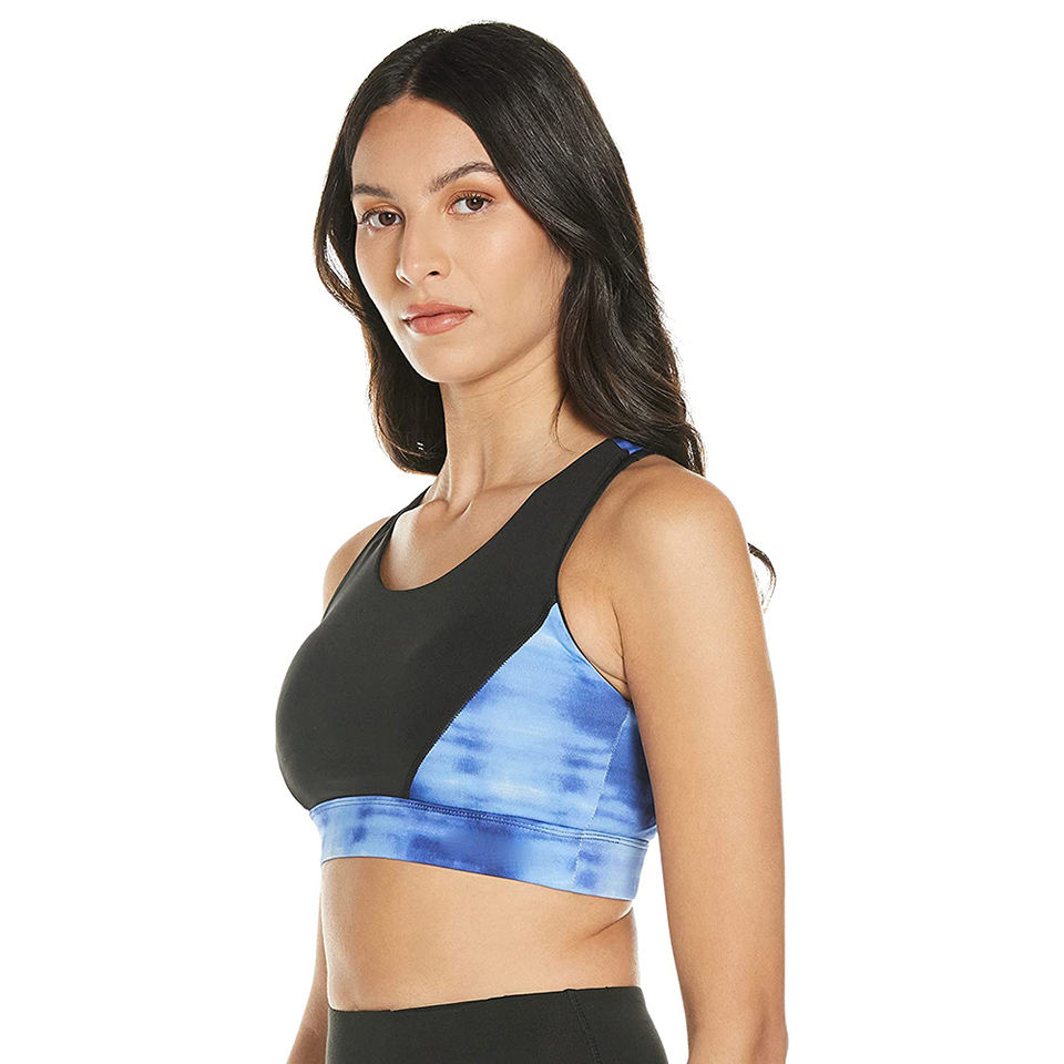 สปอร์ตบราสำหรับสตรีผ้าสแปนเด็กซ์โพลีเอสเตอร์ยืดหยุ่นออกแบบได้พิมพ์โลโก้ตามต้องการสไตล์ล่าสุด