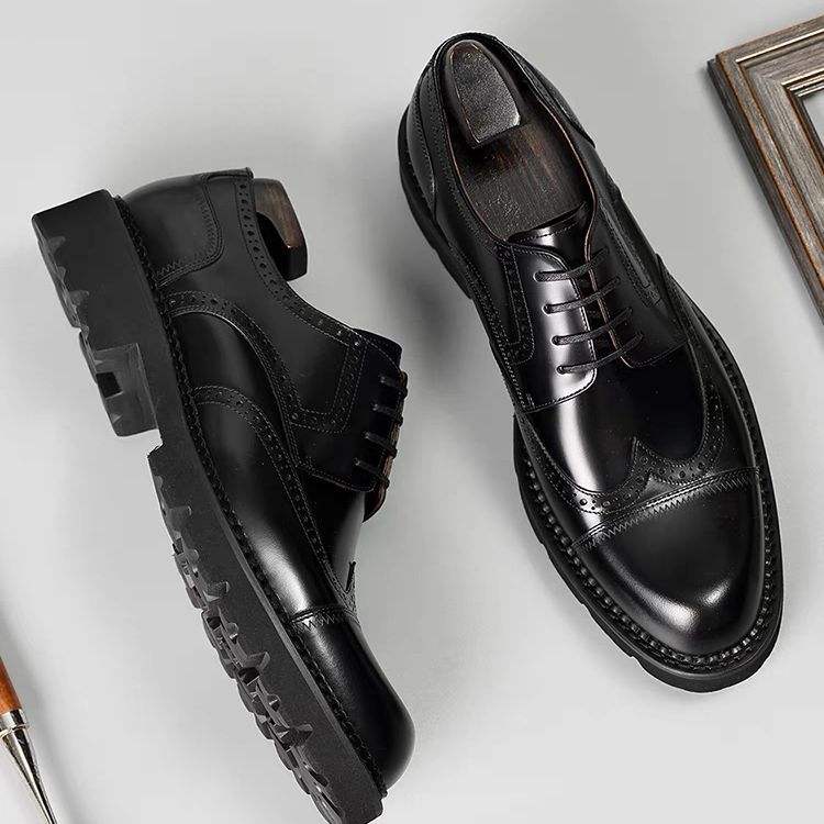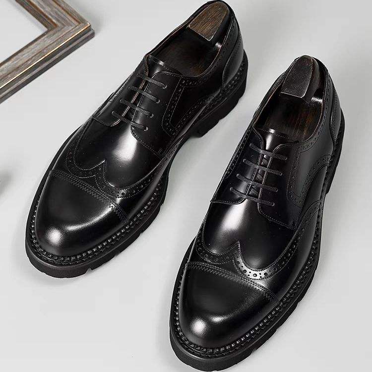 รองเท้าโบรกสไตล์อังกฤษสำหรับผู้ชายรองเท้าหัวรอองเท้ากลมหนาพื้นรองเท้าน้ำหนักเบากันลื่นเป็นทางการธุรกิจลำลองฤดูใบไม้ร่วง