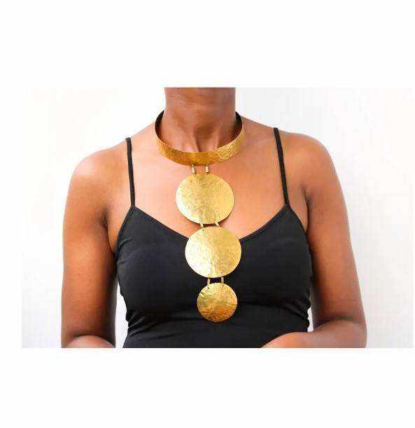 สร้อยคอเหรียญทองเหลืองสไตล์โมเดิร์นล่าสุดสำหรับผู้หญิงสำหรับงานปาร์ตี้ คุณภาพสูง 100% ทำด้วยมือ