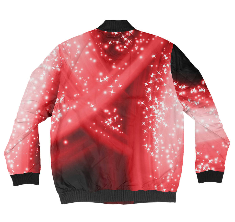 แจ็คเก็ตหนังขนเฟอร์ตกแต่งสำหรับฤดูหนาวแจ็คเก็ตบอมเบอร์ลายดาวสีแดงสีดำมีซิปพิมพ์โลโก้ออกแบบได้ตามต้องการ