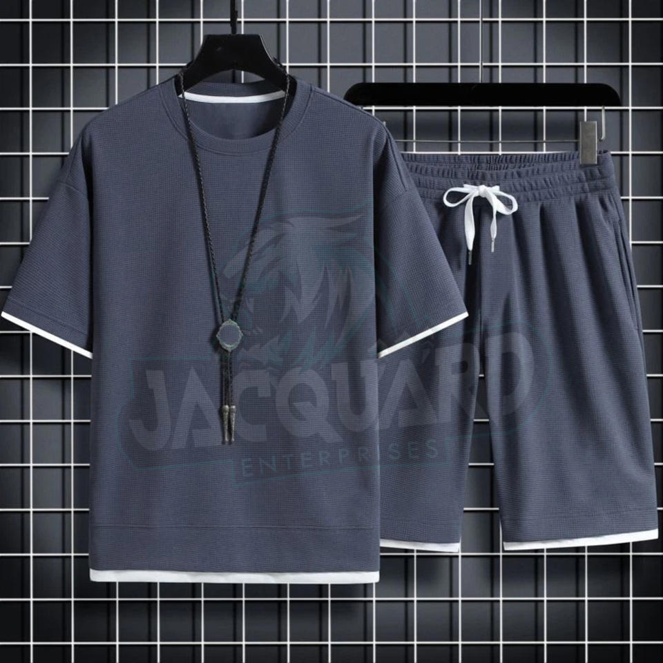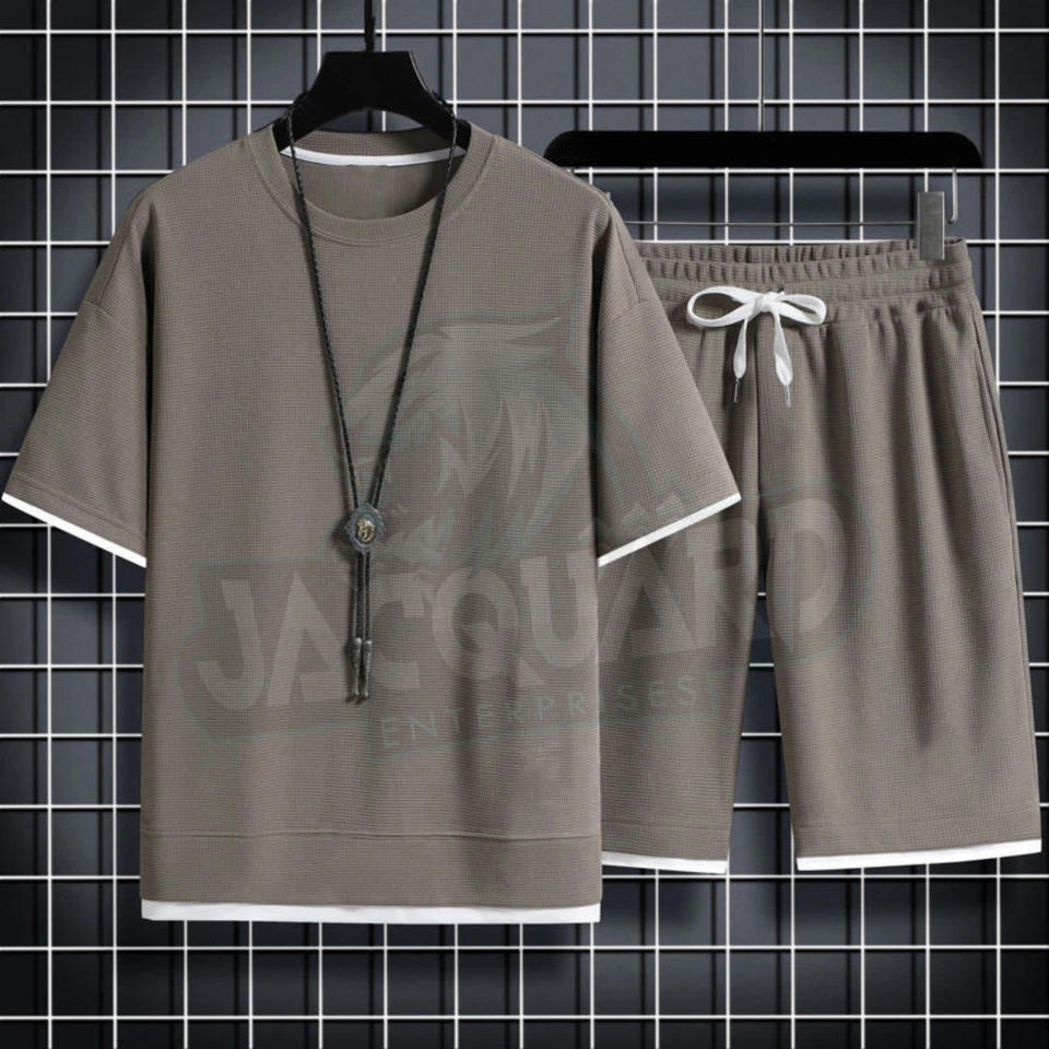 ชุดเซ็ตเสื้อยืดแขนสั้นกางเกงขาสั้นลำลองสไตล์ใหม่ล่าสุดสำหรับฤดูร้อน ชุดลำลองสีพื้น แบรนด์เสื้อผ้าผู้ชาย ชุด 2 ชิ้น