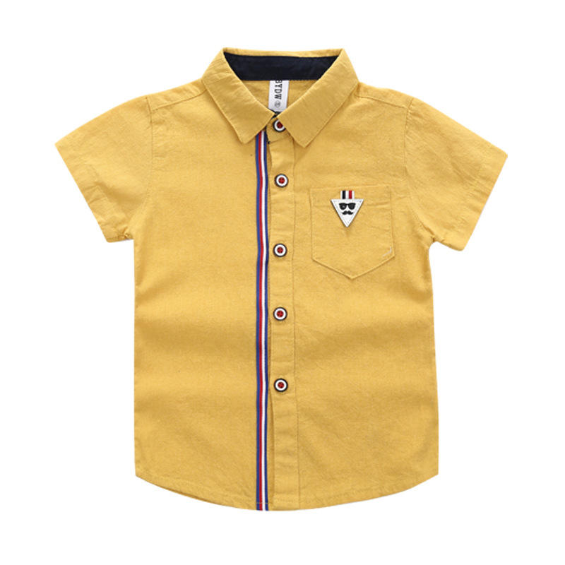 เสื้อเชิ้ตเด็กผู้ชายสไตล์ล่าสุด แขนสั้น ผ้าโพลีเอสเตอร์/คอตตอน ผสมผสาน แห้งเร็ว ระบายอากาศดี พิมพ์ลาย มีกระเป๋าติดกระดุม เนื้อผ้านุ่ม สวมใส่สบาย