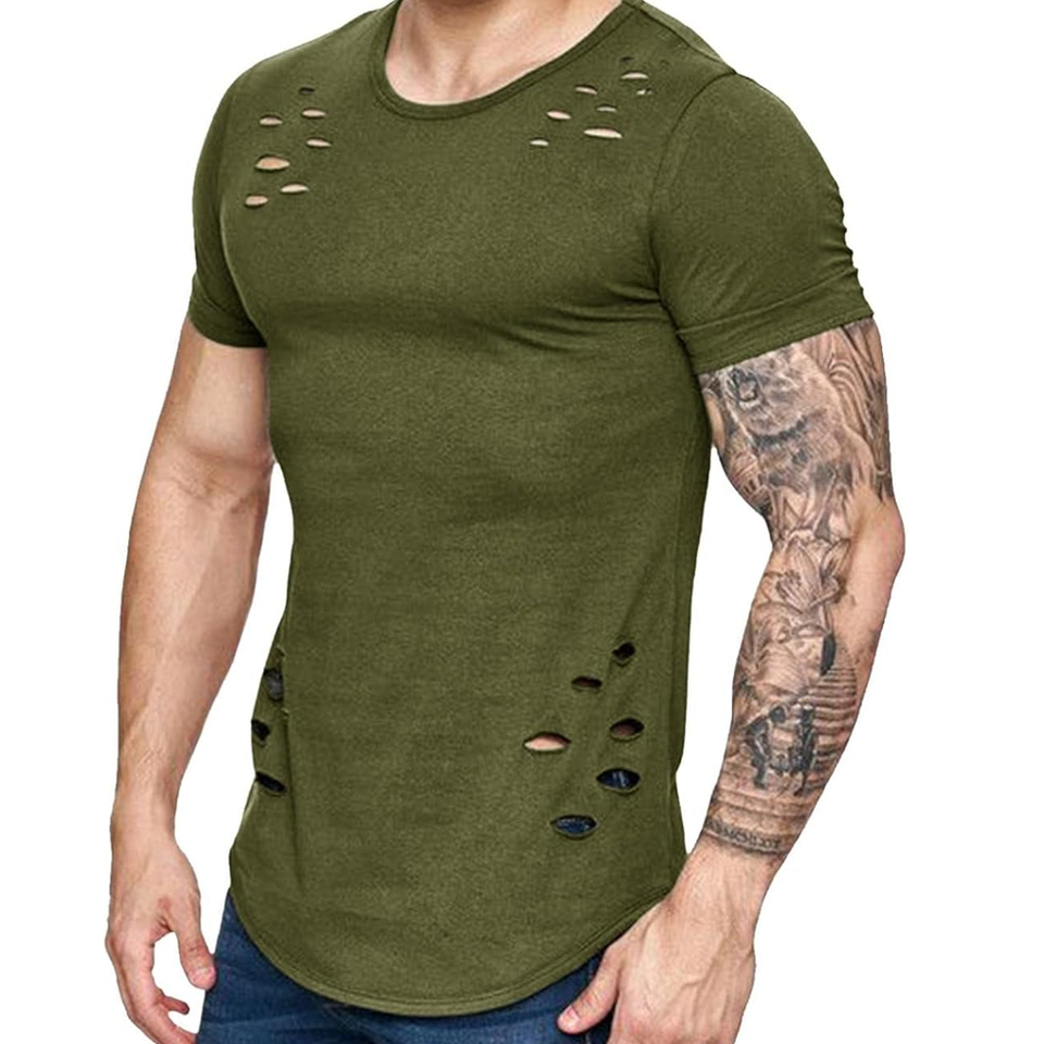 เสื้อยืดมีรูขาดของผู้ชายเสื้อยืดมีรูขาดเป็นรูผ้าฝ้าย100% แฟชั่นใหม่ล่าสุด