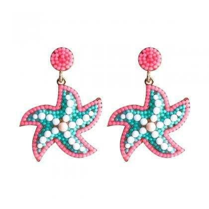 ต่างหูรูปปลาดาวปักลูกปัดที่มีสไตล์ล่าสุดพร้อมเครื่องประดับทำมือทันสมัยหรูหราพรีเมี่ยมคุณภาพสูงสำหรับเด็กผู้หญิง