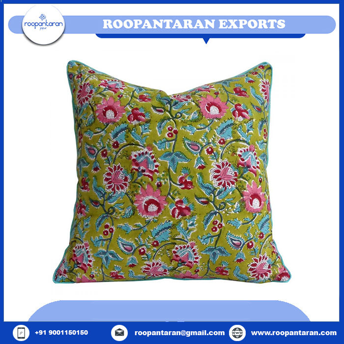 ปลอกหมอนอิงผ้าฝ้ายพิมพ์ลายดอกไม้งานทำมือปลอกหมอนสไตล์อินเดีย