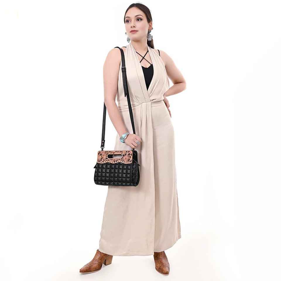 Latest Stylish Quilted Flower-Tooled Genuine Leather Western Sling Bag Luxury Design Carving Autumn Cowgirl Style Purse
