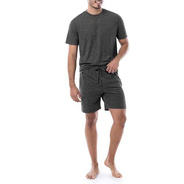 ชุดลำลองฤดูร้อนล่าสุดสำหรับผู้ชาย เสื้อยืดและกางเกงขาสั้นเอวยางยืด สีเทาล้วน ชุดเซ็ตเสื้อผ้าผู้ชาย ลดราคา