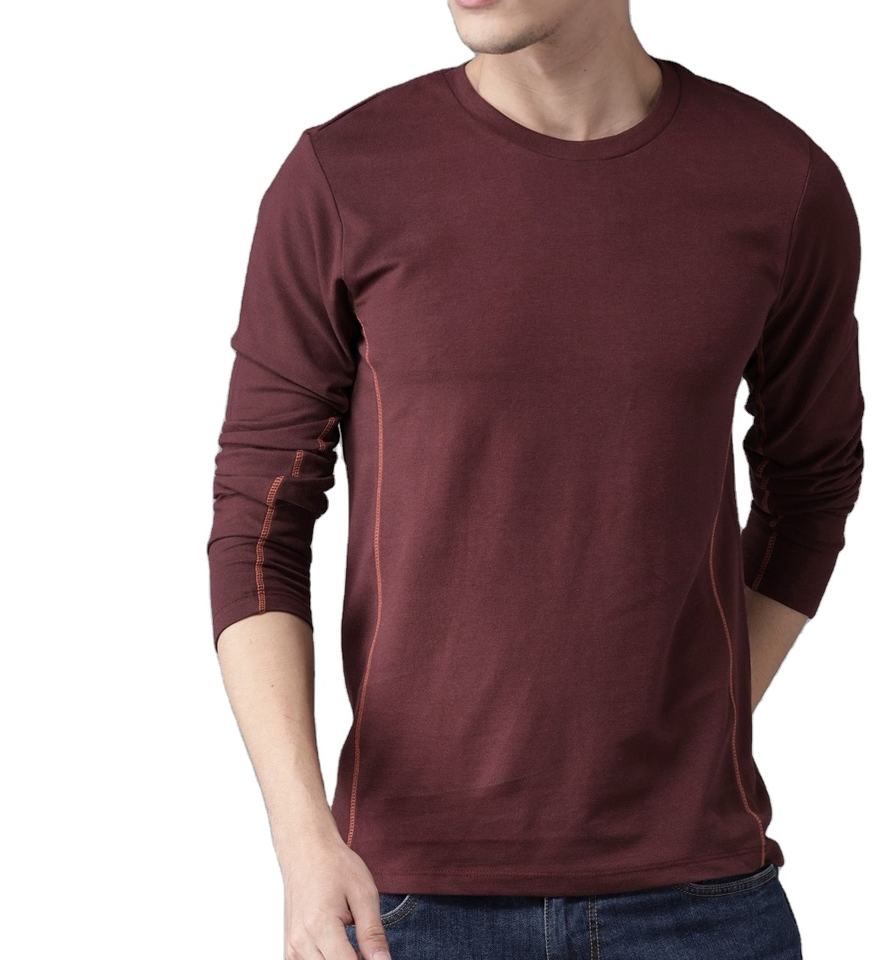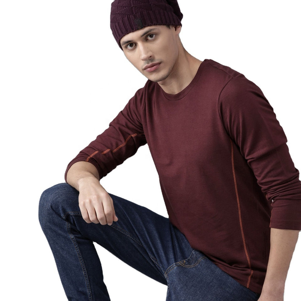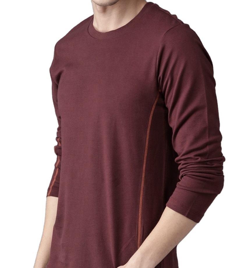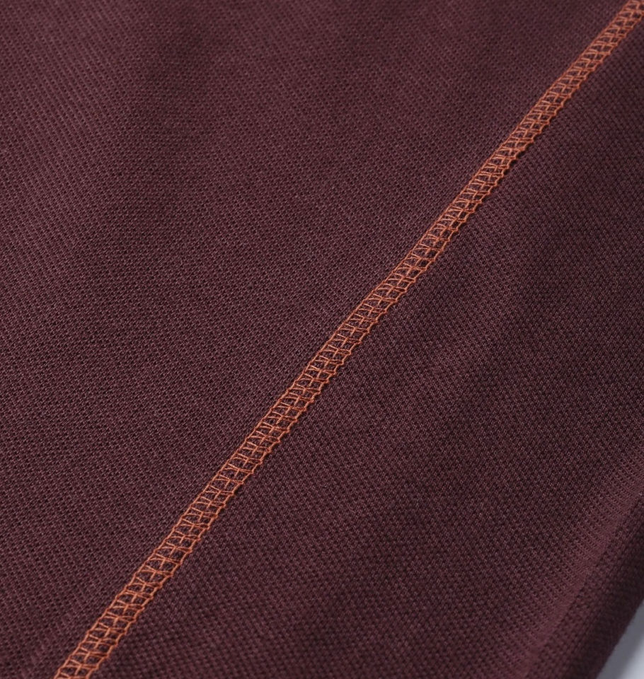 เสื้อยืดทางการสำหรับผู้ชายเสื้อแขนยาวผ้าถักสไตล์ใหม่ล่าสุดย้อมสีน้ำตาลแดงสำหรับฤดูร้อน