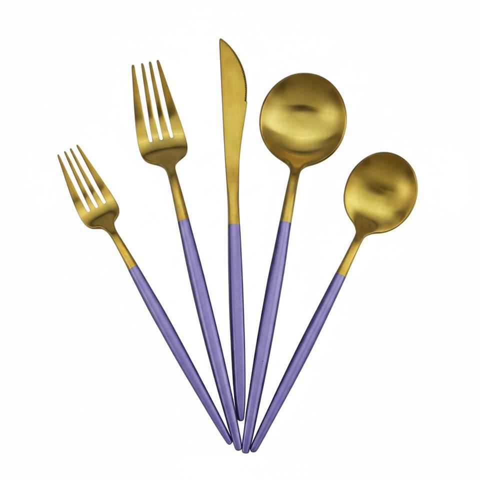 ชุดช้อนส้อมสแตนเลสสตีลสีทองสุดหรูทันสมัยแบบยั่งยืน พร้อมช้อนส้อมสีเทาดำ สำหรับใช้ในบ้าน โรงแรม ร้านอาหาร และงานแต่งงาน