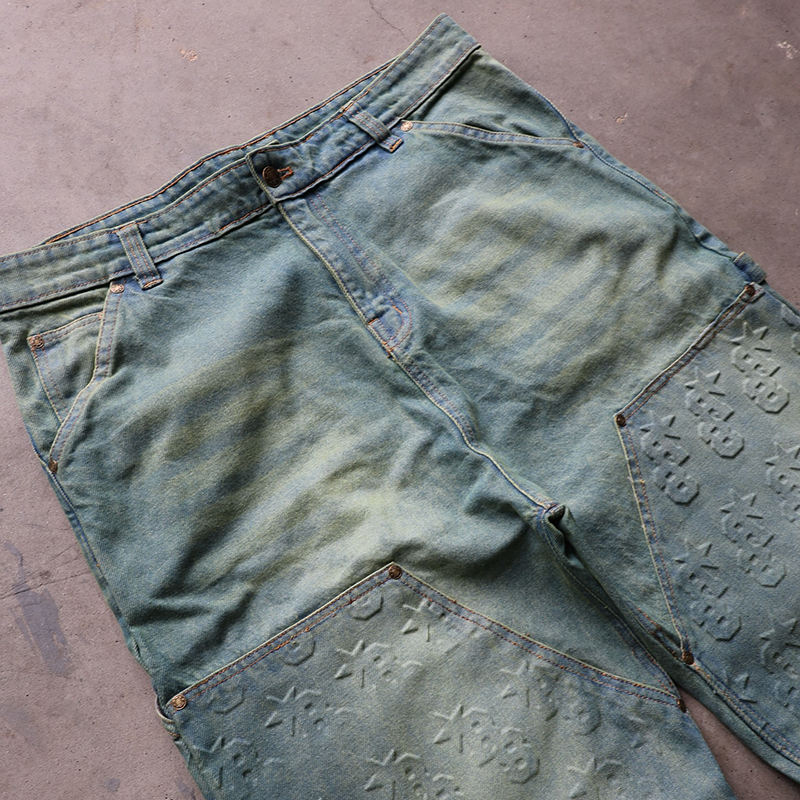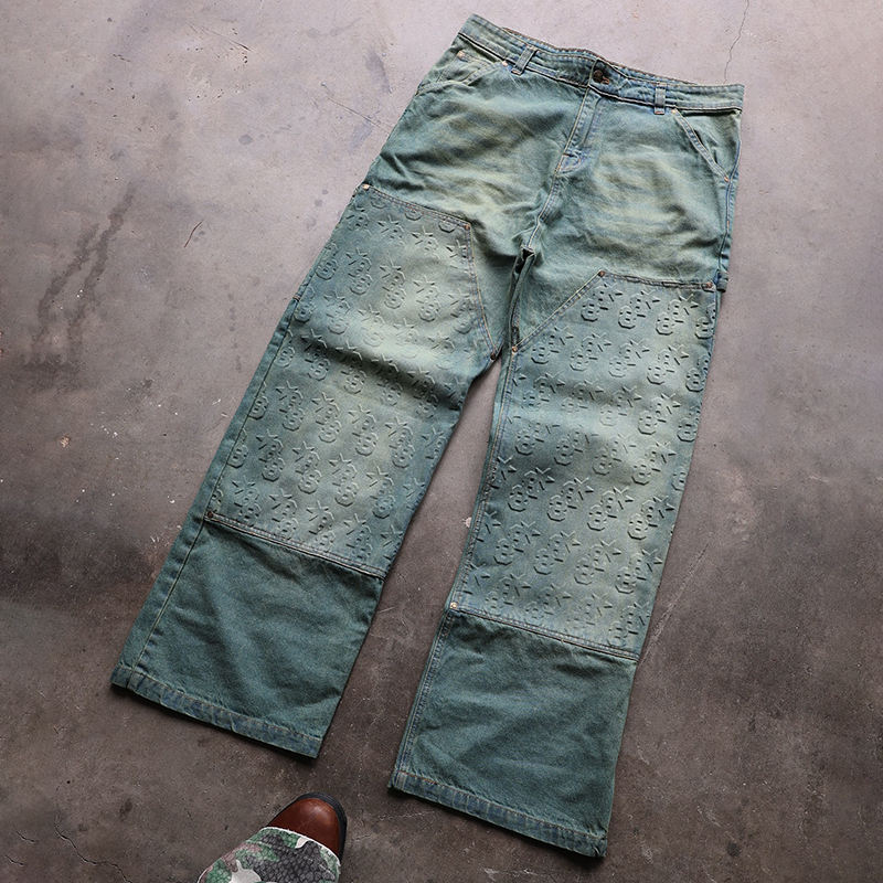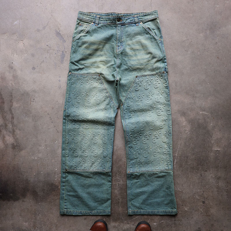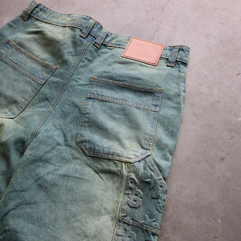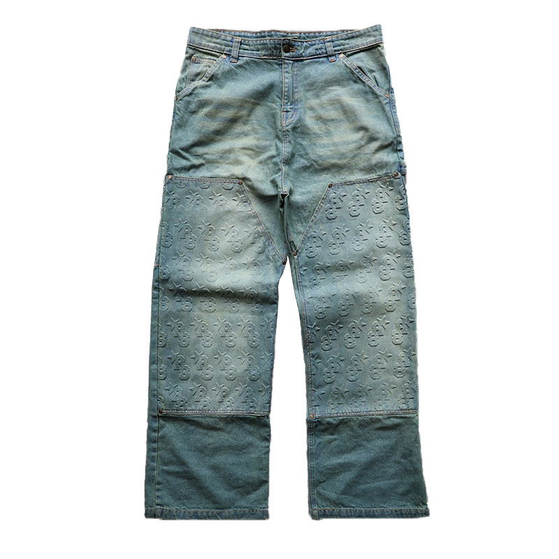 Latest Top Manufacturers Custom Straight Washed Vintage Streetstyle Embossed Heavyweight Loose Fit Men's Jeans