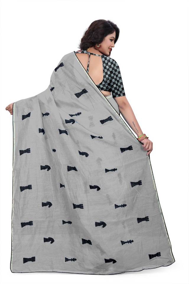 ชุดผ้าส่าหรีสีขาวสำหรับผู้หญิงผ้าคอตตอนดีไซน์เนอร์งานปักลายดอกไม้ชุดงานเลี้ยงต้อนรับแบบดั้งเดิมล่าสุด