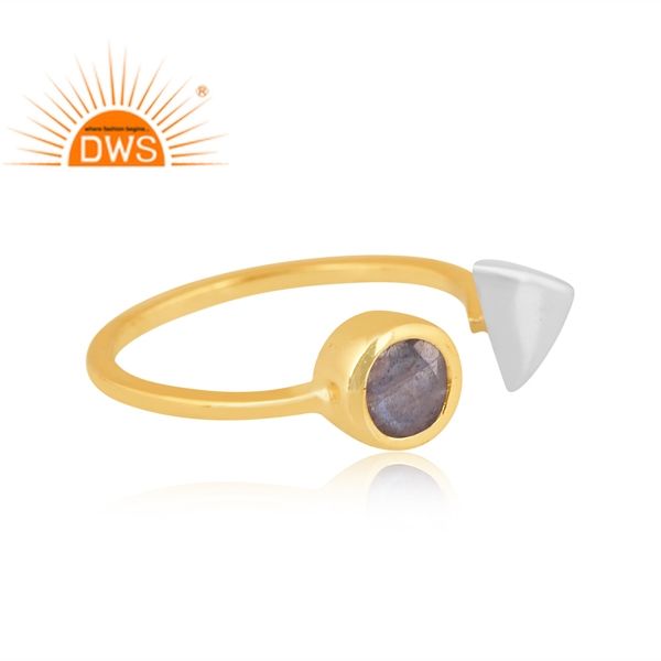 แหวนอัญมณีลาบราดอไรต์ธรรมชาติชุบทอง18K แบบปรับได้จากผู้ผลิตเครื่องประดับชั้นดี