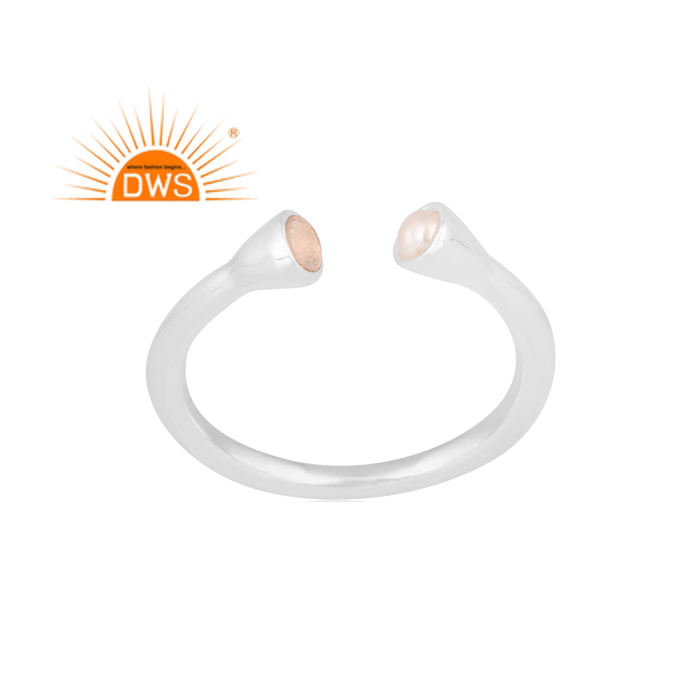 แหวนเงินแท้ประดับมุกธรรมชาติและโรสควอตซ์ปรับขนาดได้ รุ่นใหม่มาแรงปี 2026 ผู้ผลิตเครื่องประดับตามสั่ง