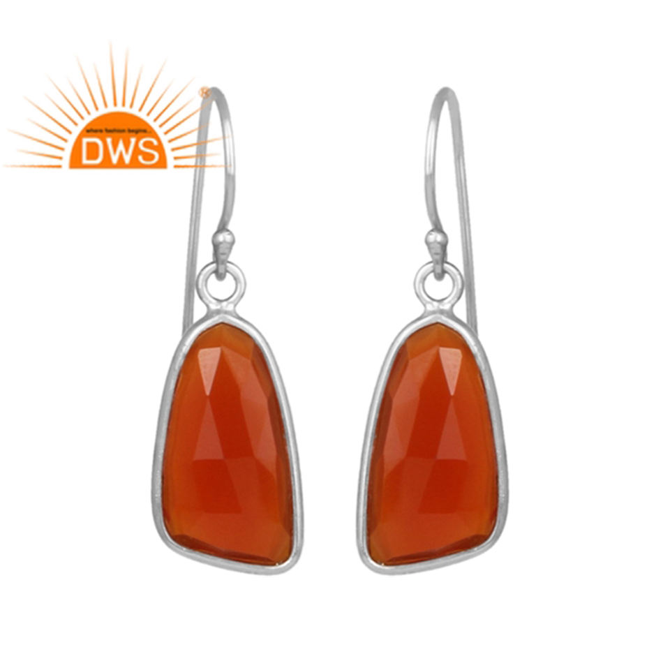 ต่างหูห้อยอัญมณีโอนิกซ์สีแดงธรรมชาติสีเงินสเตอร์ลิงสี925แบบปรับแต่งได้ตามต้องการ