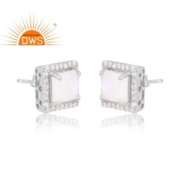 ต่างหูเม็ดกลมสีรุ้งและอัญมณีสังเคราะห์ชุบโรเดียมสีเงิน925ล่าสุด